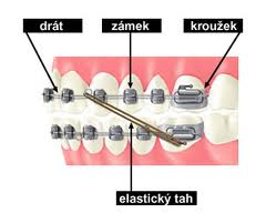 a) fixním aparátem (zámečky, kroužky nalepené na pevno, průběžné drátěné oblouky připevněné gumičkami k aparátu)